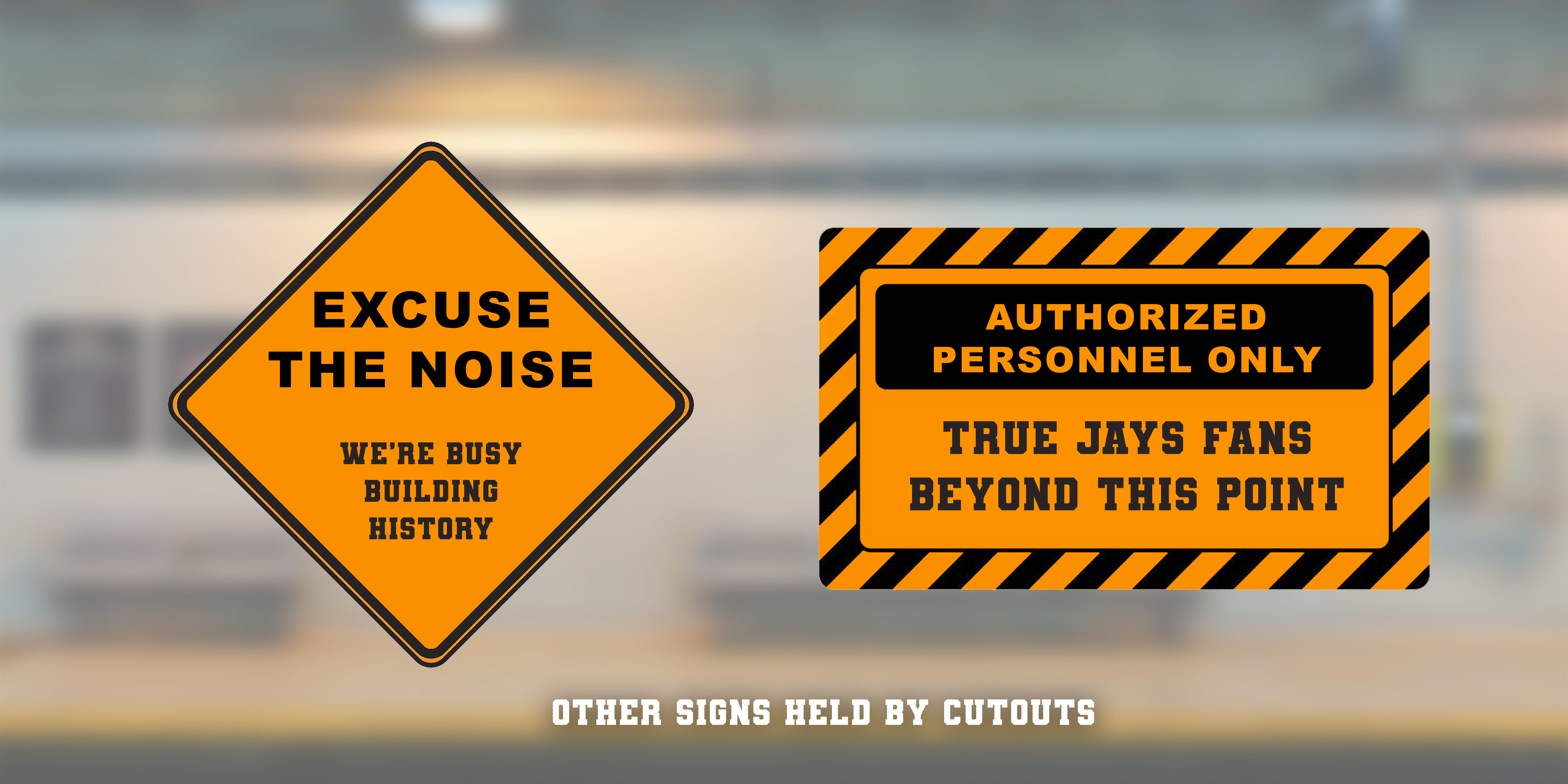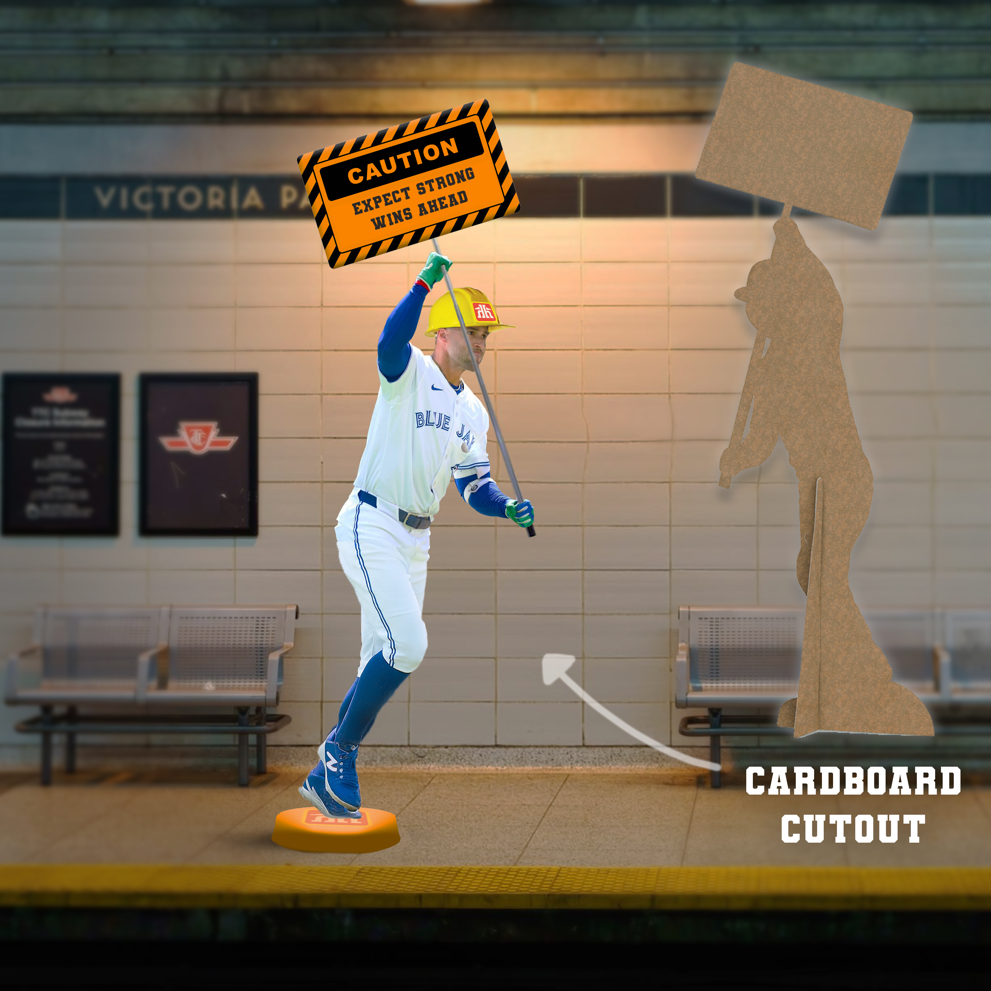 Fans can snap photos with life-sized cutouts of players around Toronto holding construction signs,