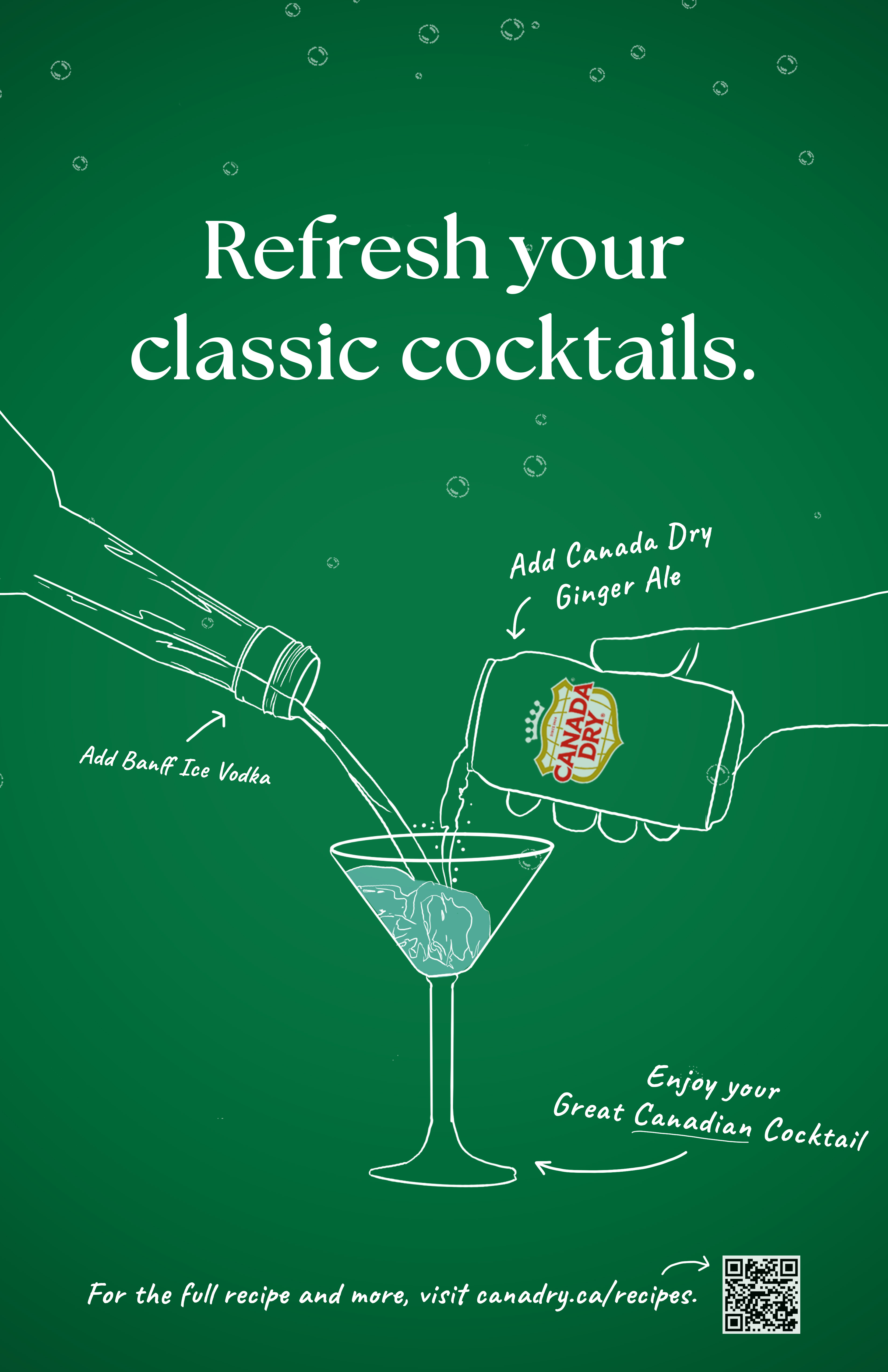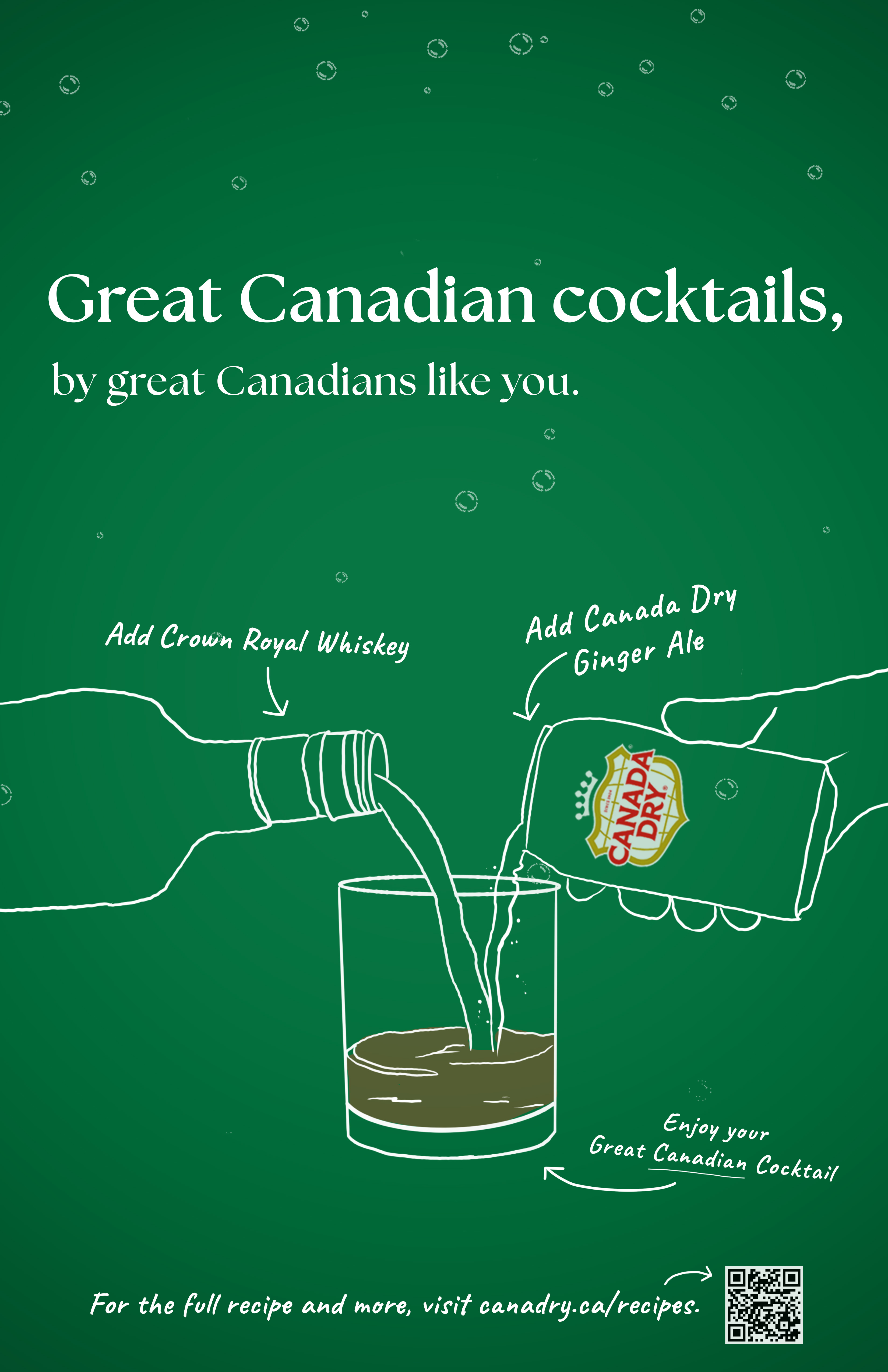 Our approach was to show how easy it is to create great Canadian cocktails with Canada Dry. Using crisp line art and straightforward recipes, the campaign breaks down the intimidation of mixology and makes cocktail culture feel accessible.
